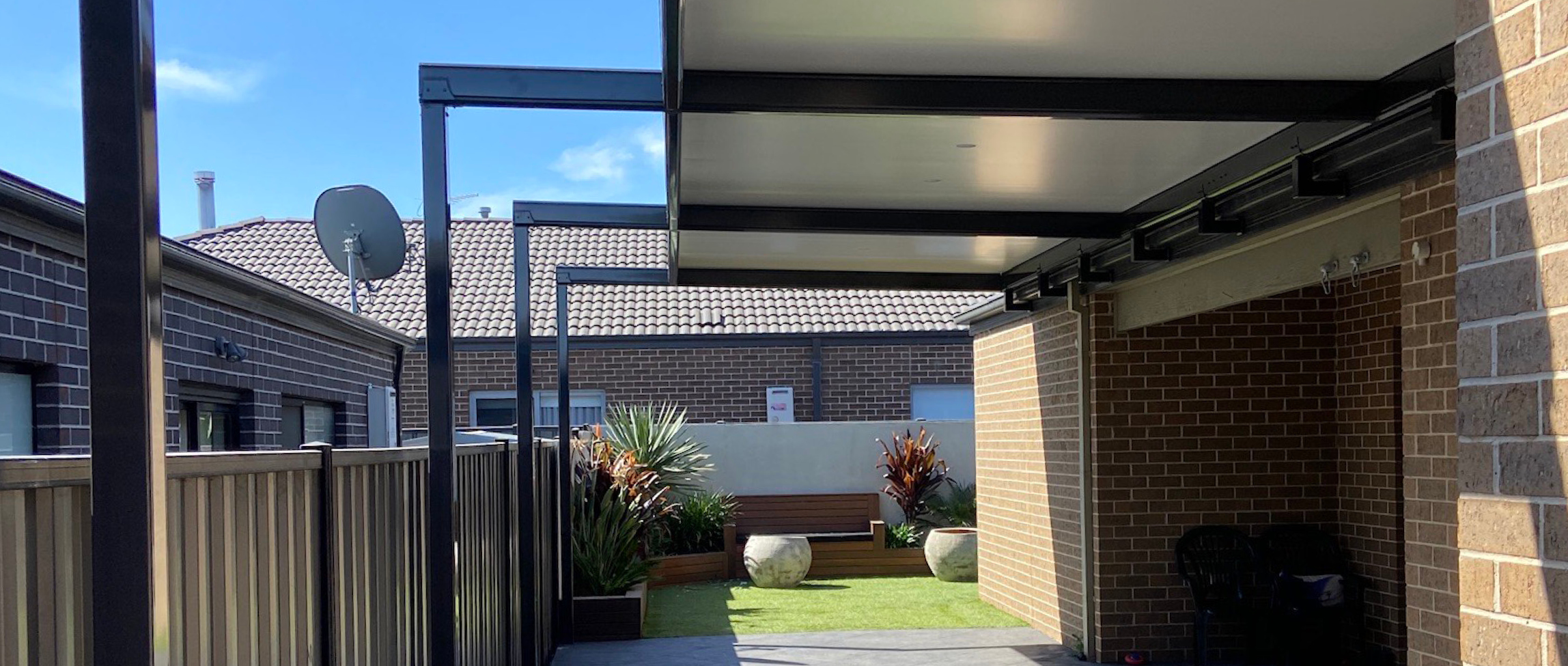 This is an effective design to obtain a large coverage area but still let a large amount of light into the area and house while keeping the columns neat against the boundary and out of the way. The column design allows the Cooldek Patio to sit right up to the boundary line maximising the space as much as possible, providing a wide open space you can enjoy with family and friends.
